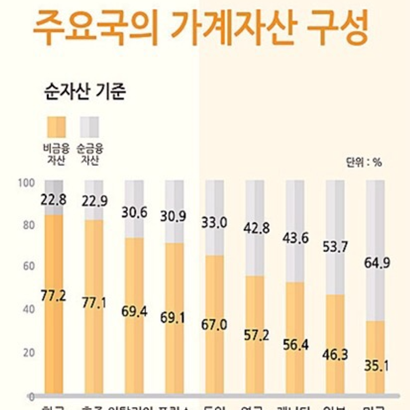 "나라의 자산 중 부동산 비중은 얼마나 될까?" 안녕하세요. 노란완두콩입니다. 오늘은 우리나라 정부가 소유하고 있는 부동산비중에 대해 논하고자 합니다. "한국 부자, 부동산 자산 비중 다시 커져 … 전체 자산의 53%"(2018년 8월 7일자 중앙일보) 먼저 묻고 싶습니다. 위와 같은 제목을 본 느낌은 어떠신지요? 무수히 많은 부동산, 토지라는 한정적 재화 위에 건물이라는 재화를 입힌 모두를 아우르는 말인 부동산. 멸실도 상당하지만 그에 반하여 신규로 등장하는 건물들이 상당하죠. 바로 용적율때문이 아닐까 싶습니다. 바닥면적의 몇 배에 이르는 건물을 지을 수 있도록 허용해 주고 있는 용적율부동산, 그 중에서 특히 아파트가 참 많은데 그래도 수많은 사람들은 그 아파트를 갖지 못해 안달입니다. 물론 젊은층을 ..